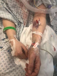 So they sedated me, which I hate. So I was coughing, feeling drugged and dopey, and in pain from their needling attempts. Never had I been stressed or anxious though so I’m not sure what this was meant to achieve. Then someone decided to try and numb my hand and without asking or warning me, they sprayed this ridiculously cold stuff on my hand which felt like it was burning me. I was screaming in pain, though lucky for them I wasn’t actually making any noise. Amidst the pain in my hand, someone must have shoved a needle in and anaesthetised me because the last thing I remember was feeling drugged and being in excruciating pain. I guess the ‘numbing’ did the trick, if only to at act as a type of pain diversion.