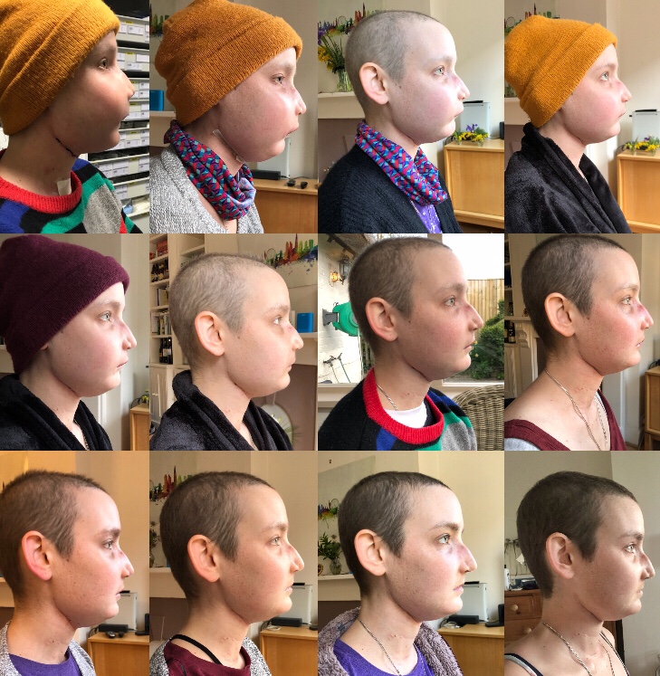 Not being able to breathe through my nose is tiring too. I was expecting it would get better, but I found out a couple of weeks ago that it was intentionally blocked off and maybe in about a year they’ll look to see if they can do anything to clear it. I can’t really deal with processing that information. Not being able to breathe through your nose is really not nice even for one day, let alone a year. My mouth and throat are constantly dry and burning. I also found out that they took a nerve out in my face and as a result, my mouth will remain drooped on the right hand side. Again, in a year they’ll probably do something to hoist it up a bit.