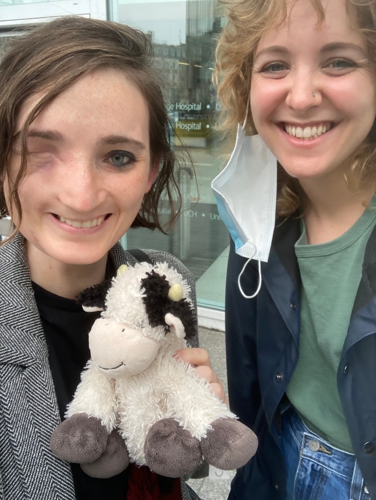 But anyway, here’s a cute pic of me and Clarence and my emotional support human (i.e. brilliant friend) Nat who came to the offending MRI with me and held my feet while I hummed Bowie tunes. Then we got brunch and walked the canals and had a G&T. Surely such a fun day can’t possibly result in finding out there’s more cancer…….