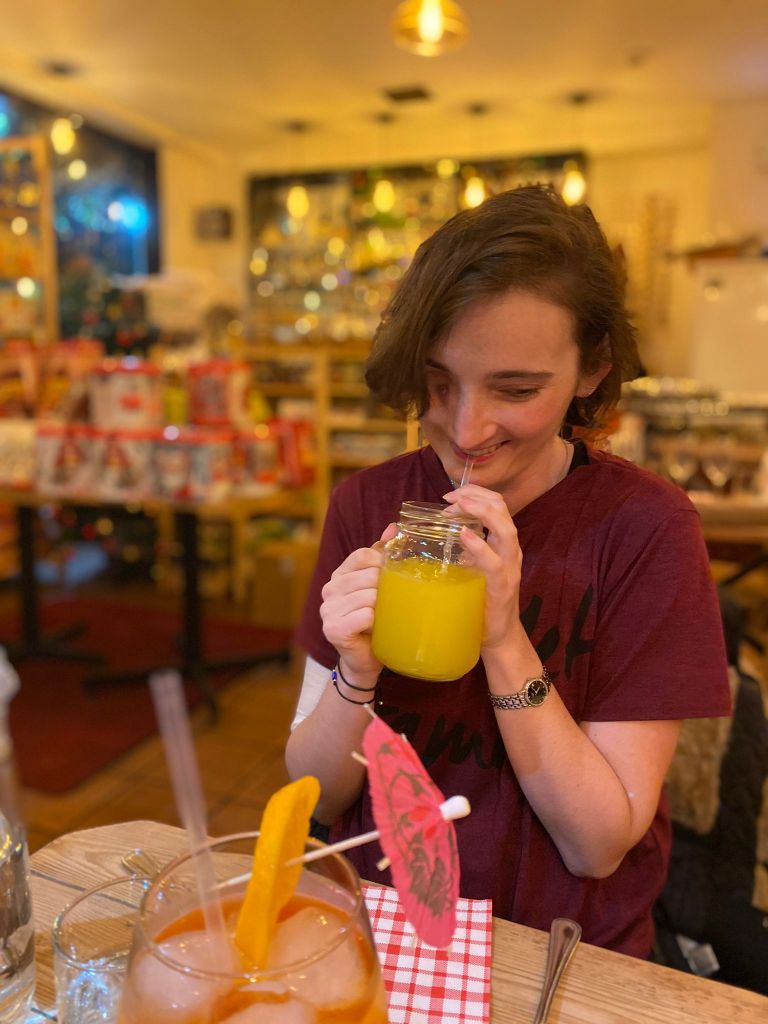 The nicest thing is the freedom it affords – Rosa and I went out for a lovely Italian Dinner last night. You’d hardly believe I was having chemo (except for the 3L of water attached to my arm). We had a lovely little outing. The other nights we’ve had microwave meals, provided by the Cotton Rooms but last night we decided to venture out. Rosa dressed like an Aperol Spritz so it was only fitting she ordered one. I was laying off the alcohol this time since I’ve got chemo that might affect my kidneys, but I’ll definitely be popping some champagne on my Birthday on Saturday, once I’m disconnected. I enjoyed living vicariously through her (I don’t actually like Aperol Spritz. Gasp!). I had a Fanta (also orange, very on brand), two in fact, and they were exactly what I needed.