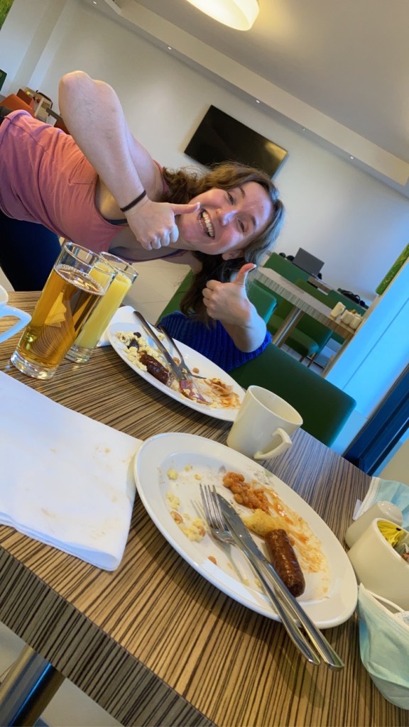 We then filled our plates with bacon, beans, sausages, hash browns and mushrooms and were very happy. Then Rosa walks me to the cancer centre (via Starbucks so I can get a LARGE Toffee Nut Latte to get me through the morning).