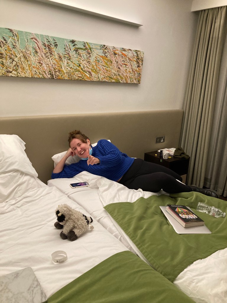 For people who need to be connected all through the night, but are otherwise relatively ok, we don’t have to stay on the ward in a hospital bed, we get to live next to the Cancer Centre at a 4* hotel run by UCLH (my hospital) called The Cotton Rooms. It allows me some respite from hospital life while I’m getting treated. It’s really lovely. We have two little twin beds and a lovely room with a bath (though the plug doesn’t work, which was a sad realisation for Rosa who had got her hopes up – I’m lucky that I’ve got a bath at home and regularly spend time in it).