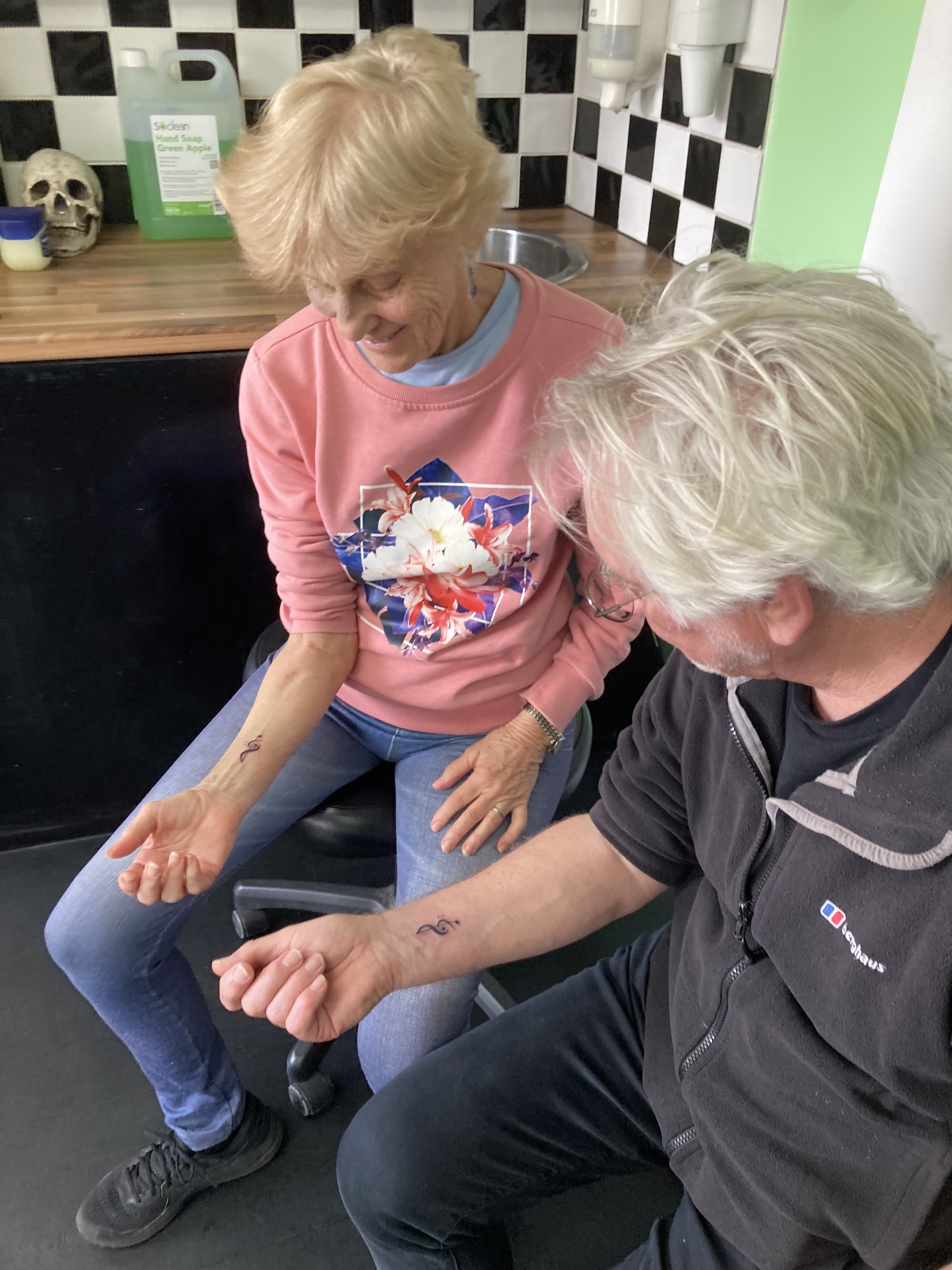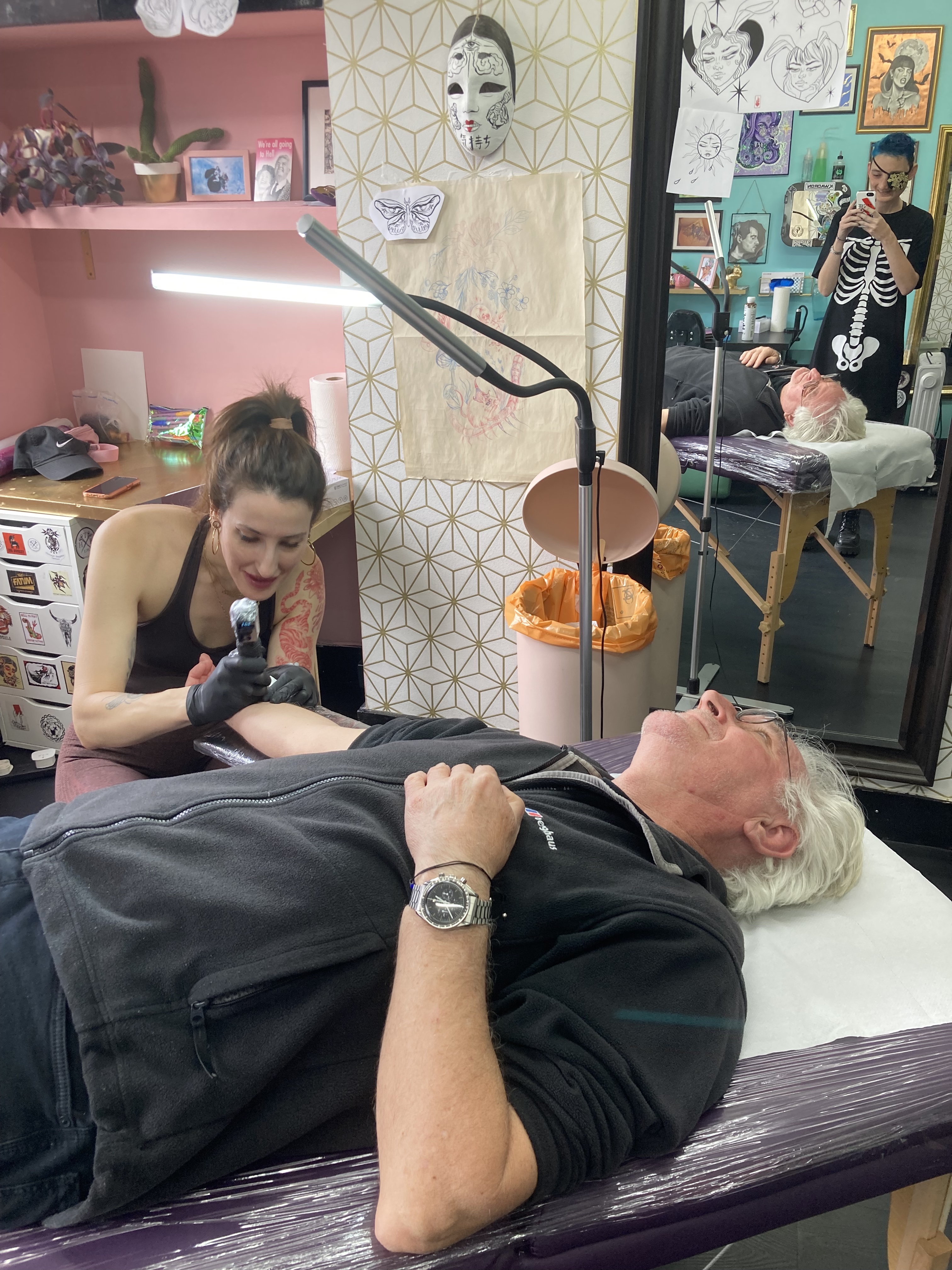 In the days leading up to getting it, I suddenly worried that I had coerced my poor 70+ yr old parents to get tattoos against their will… But they assured me they did actually want them, so I let that go. Da wanted to go first, and Ma chose second, which left me bringing up the rear. They were both so chill about it, saying that yeah, it hurt a bit, but it wasn’t too bad.