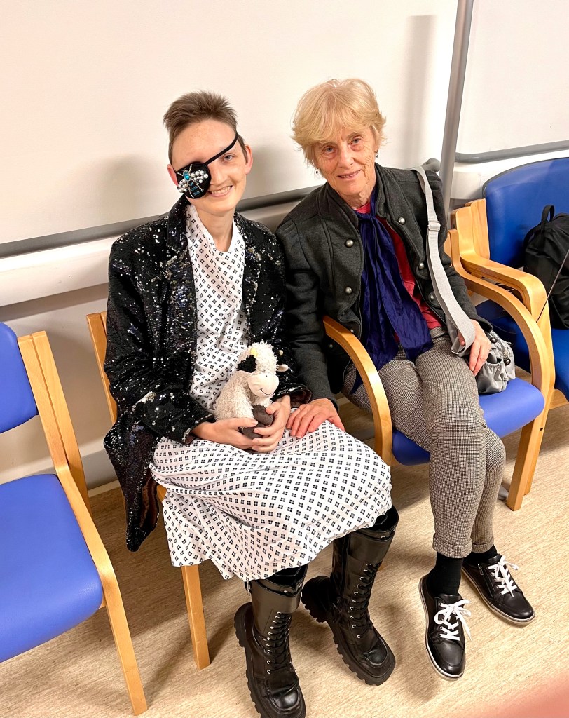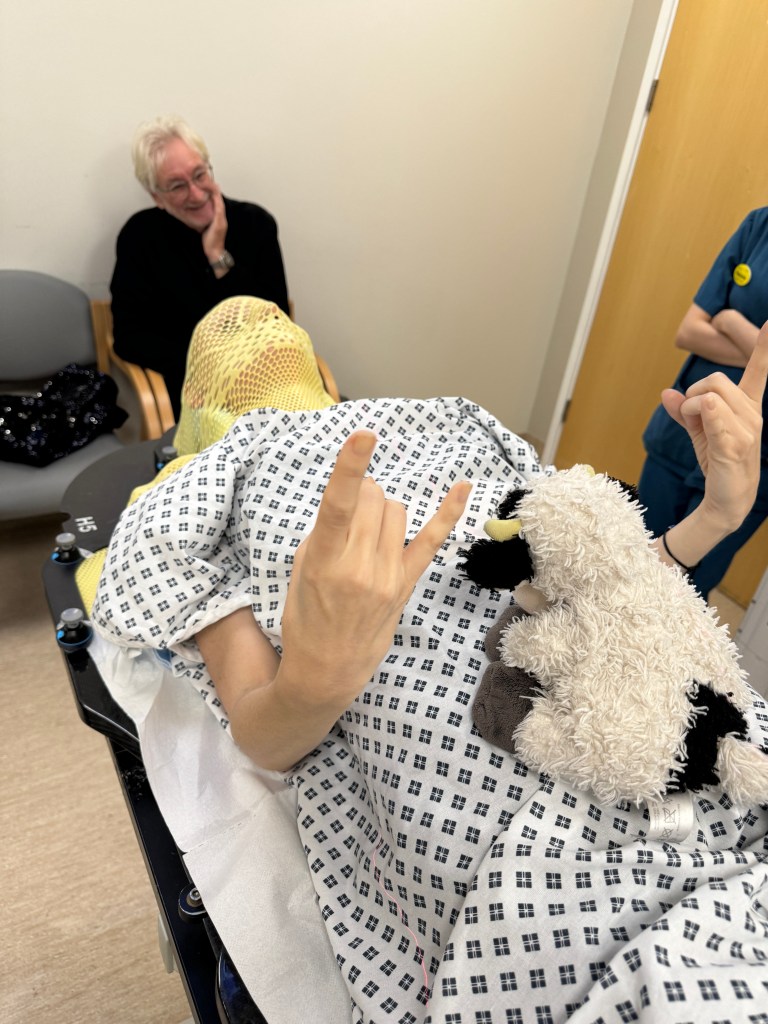 Before going in, they told me to go and get changed into a hospital gown. As I’m always on the verge of tears at the moment, they accompanied my attempt to explain that I don’t wear hospital gowns. It might sound ridiculous, but managing what I wear for appointments is incredibly important to me. I hate the dehumanising nature of the hospital gown, turning us all into the blank slate patient to be treated, rather than a real living human. And dressing in my most favourite and fabulous clothes through all these shitty appointments is a big part of what gets me through. My important little pretence that I’ve got any control over anything. But apparently the gown was non-negotiable. When I pointed out I’d never needed one before, they informed me that this mask was bigger, longer, more serious than the last two I’d had. Well, they kept that quiet. Great.